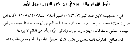 فتأمَّل يا عبد الله كيف فهم كبار علماء السَّادة المالكيَّة حديث النزول وفق أصول إمام مذهبهم سيدنا مالك بن أنس، وأمعن النظر في تخريج القاضي الباجي لتفريقهم بين حديث النُّزول وحديث الضَّحك من جهة، وبين حديث السَّاق وحديث اهتزاز العرش عند موت سيِّدنا سعد بن معاذ رضي الله عنه من جهة أخرى.