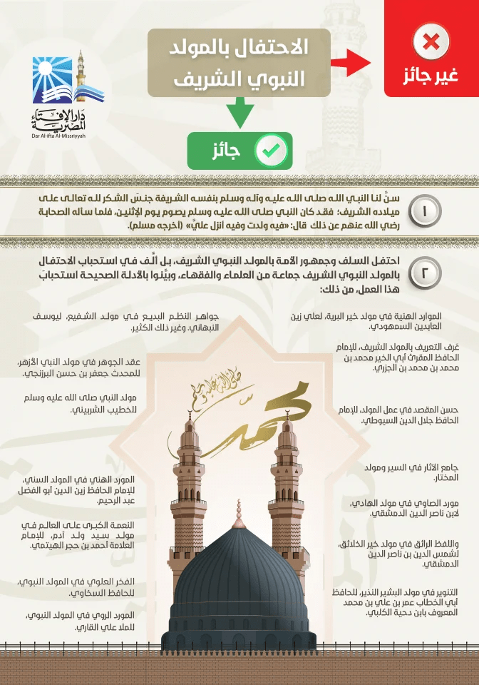 نَحْتَفِلُ بِمَوْلِدِ رَسُولِ اللهِ صَلّى اللهُ عليه وسَلَّمَ لِهَذِهِ الأُمُورِ ولِغَيْرِها الكَثِيرَ الكَثِيرَ مِنَ الْمَزايا في هَذِهِ الْمُناسَبَةِ العَطِرَةِ فَضْلاً عَمّا يَحْصُلُ في هَذا اليَوْمِ مِنَ البِرِّ والإِحْسانِ وإِطْعامِ الفُقَراءِ والْمَساكِينِ وسَماعِ مَدْحِ الْمَدّاحِينَ لَهُ صَلّى اللهُ عليه وسلم بِأَفْئِدَةٍ عامِرَةٍ بِحُبِّ محمَّدٍ فَتَنْساب النَّغَماتُ بِأَلْحانِ الْمُحِبِّينَ عَذْبَةً شَجِيَّةً وهُمْ هائِمُونَ بِالذّاتِ الْمُحَمَّدِيَّةِ يُصَلُّونَ عَلَيْهِ ويُسَلِّمُونَ عَلَيْهِ عَمَلاً بِما أَمَرَ اللهُ ﴿صَلُّوا عَلَيْهِ وسَلِّمُوا تَسْلِيمًا (٥٦)﴾