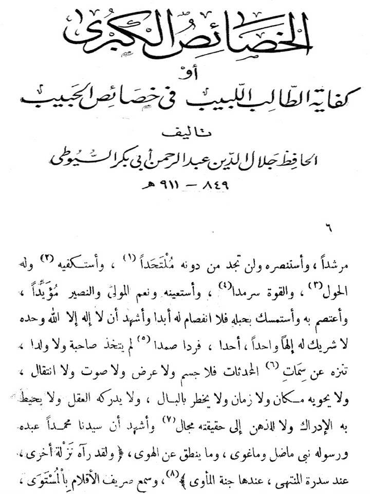 كلام للسيوطي في تنزيه الله عن المكان والزمان والجسمية والصوت وسائر صفات المخلوقين: وأشهد ان لَا إِلَه إِلَّا الله وَحده لَا شريك لَهُ إِلَهًا وَاحِدًا أحدا فَردا صمدا لم يتَّخذ صَاحِبَة وَلَا ولدا تنزه عَن سمات المحدثات فَلَا جسم وَلَا عرض وَلَا صَوت وَلَا انْتِقَال وَلَا يحويه مَكَان وَلَا زمَان وَلَا يخْطر بالبال وَلَا يُدْرِكهُ الْعقل وَلَا يُحِيط بِهِ. [الخصائص الكبرى للسيوطي].