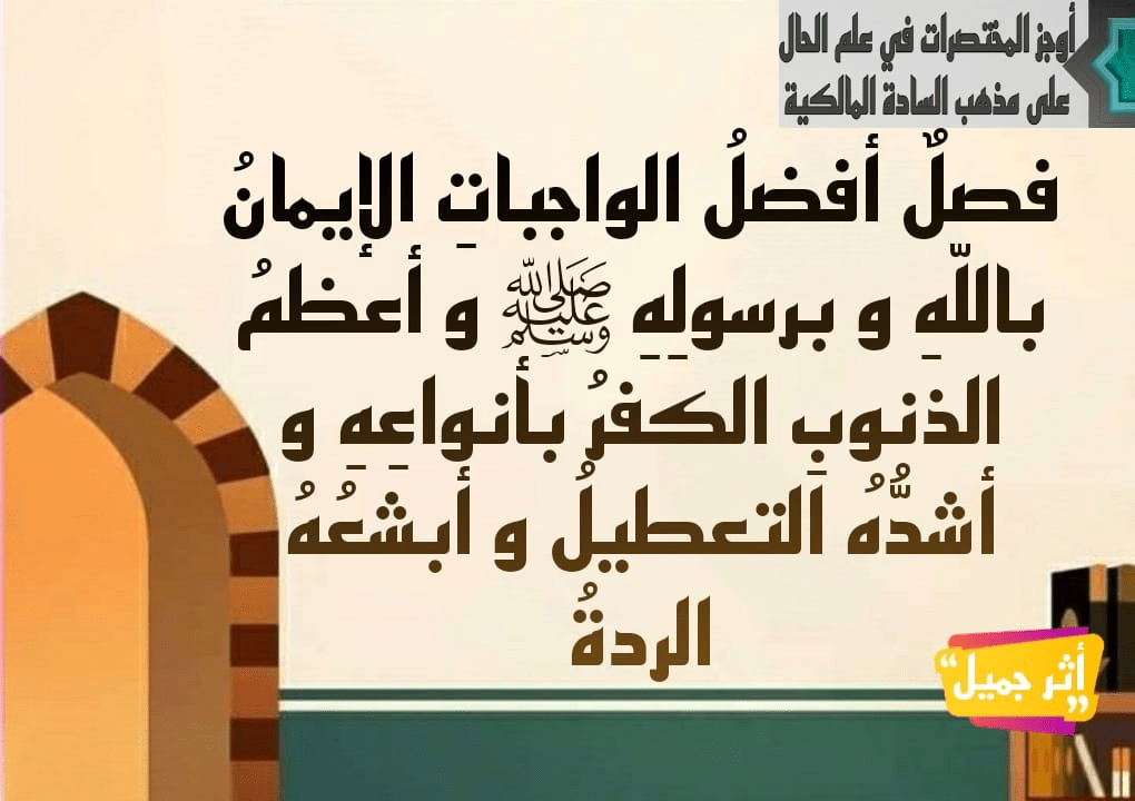 إذا علم ما تقرر فاعلم أنه يجب على كل مكلف معرفته تعالى لقوله تعالى: { فاعلم أنه لا إله إلا الله } فالمعرفة فرض عين على كل مكلف وهو البالغ العاقل، الذي بلغته دعوة الإسلام، والمعرفة هي جزم القلب الموافق للحق عن دليل فلا يكفي الظن في أمر التوحيد لقوله تعالى: { وان الظن لا يغني من الحق شيئا } فلا بد من عقد القلب،