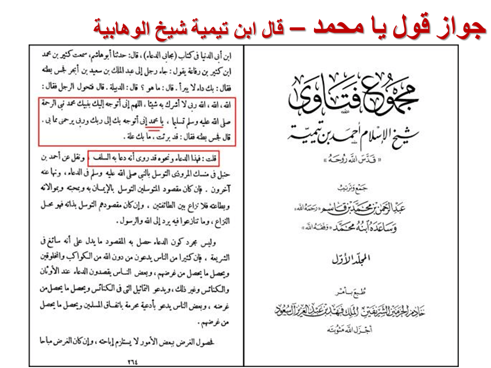سَتُكفّر الوهابية شيخهم ومرجعهم ابن تيمية لأنهم يكفرون من يقول “يا محمد” -على معنى الاستغاثة مع اعتقاد أن الله خالق النفع والضر- وهم يسمونه شيخ الإسلام …؟؟؟؟؟ !
