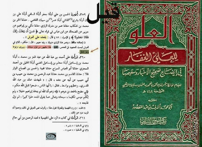 الذهبي يثبت ان ما ينسبه الوهابية لمجاهد قولهم بقعود النبي مع ربه على العرش انه باطل