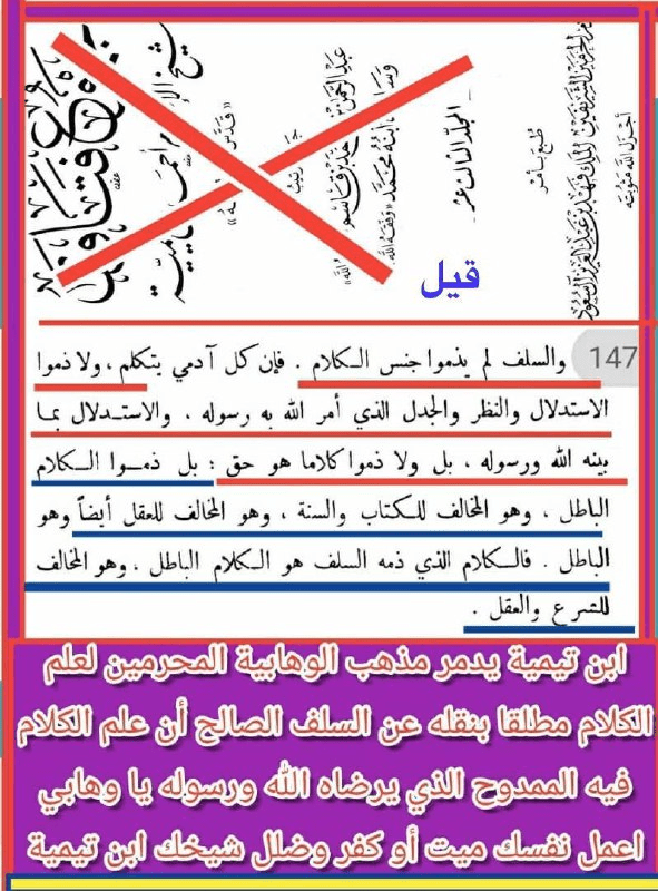 ابن تيمية يمدح علم الكلام والوهابية يذمون علم الكلام، وبهذا بدّعوا شيخهم من حيث لا يشعرون