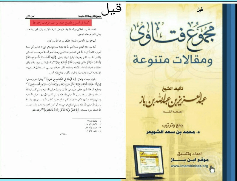 في كتابه المسمى(مجموع فتاوى ومقالات متنوعة)، ابن باز يصنف مقالا كاملا للاحتفال بأسبوع محمد بن عبد الوهاب، ولكنه في المقابل يحرم الاحتفال بالمولد النبوي الشريف*