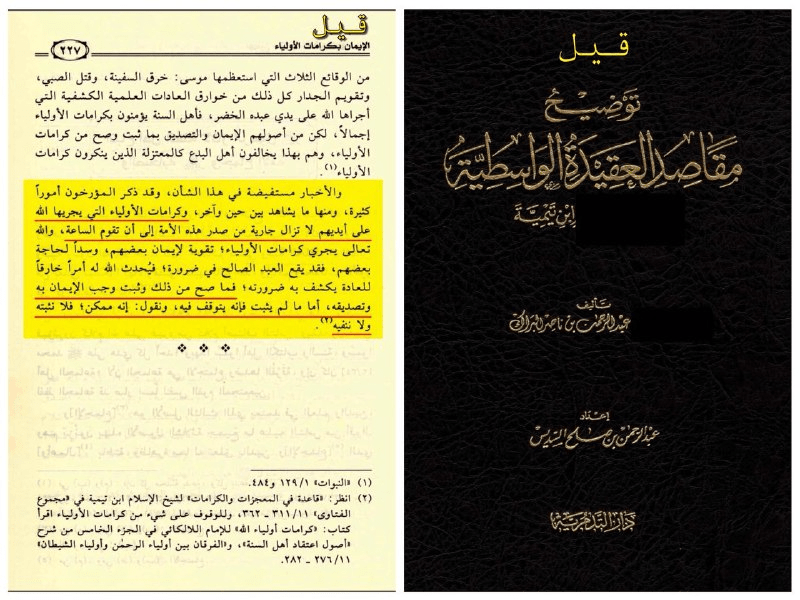 البرَّاك الوهابي في كتابه المسمى (توضيح مقاصد العقيدة الواسطيَّة، ص227) يقول: