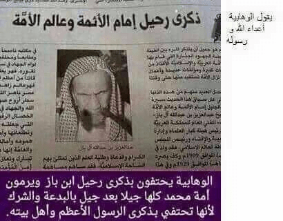 الوهابية يحتفلون بذكرى رحيل بن باز ويرمون أمة محمد بالشرك لأنهم يحتفلون بذكرى ولادة الرسول عليه الصلاة والسلام