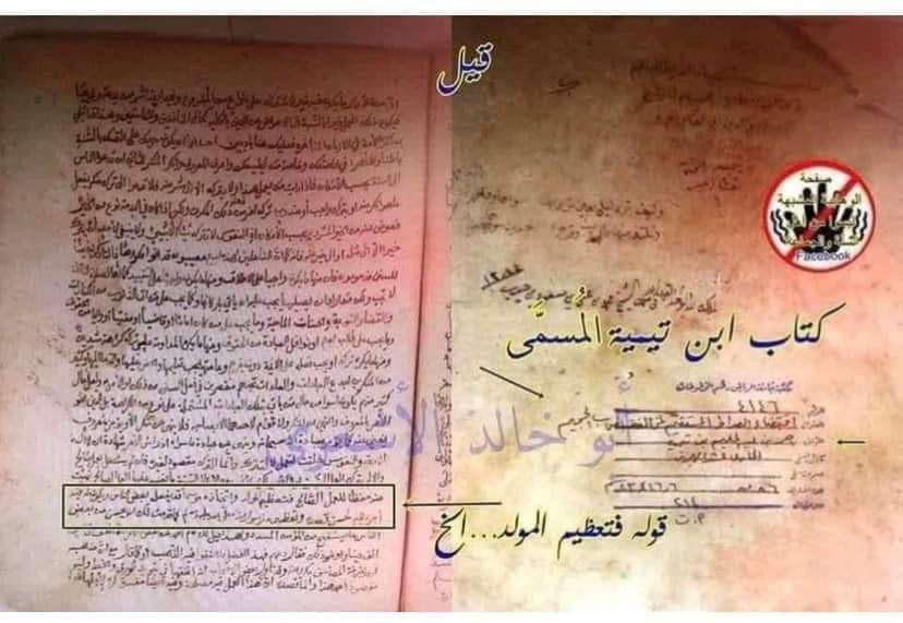 ابن تيمية الحرّاني شيخ الوهابية أدعياء السّلفية يمدح عمل المولد ويقول في كتابه المسمى اقتضاء الصراط المستقيم (فتعظيم المولد واتخاذه موسماً قد يفعله بعض الناس ويكون لهم فيه أجر عظيم لحسن قصدهم وتعظيمهم لرسول الله).