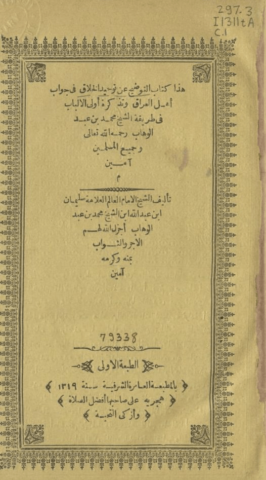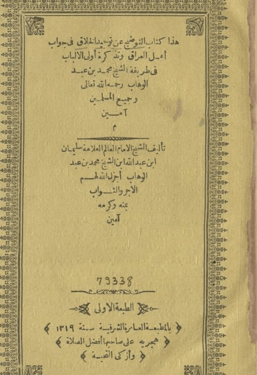 سليمان بن عبد الله آل الشيخ في كتاب “التوضيح عن توحيد الخلاق في جواب أهل العراق وتذكرة أولي الألباب في طريقة الشيخ محمد بن عبد الوهاب” يوافق الأشاعرة في تنزيه الله ونفي المكان عن الله.