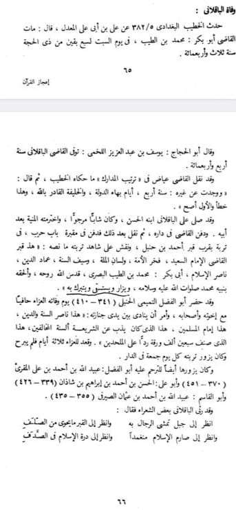 وقال في الدرء أيضا : ” ولما صنف أبو بكر البيهقي كتابه في مناقب الإمام أحمد – و أبو بكر البيهقي موافق لابن الباقلاني في أصوله – ذكر أبو بكر اعتقاد أحمد الذي صفنه أبو الفضل عبد الواحد بن أبي الحسن التميمي وهو مشابه لأصول القاضي أبي بكر “. انتهى