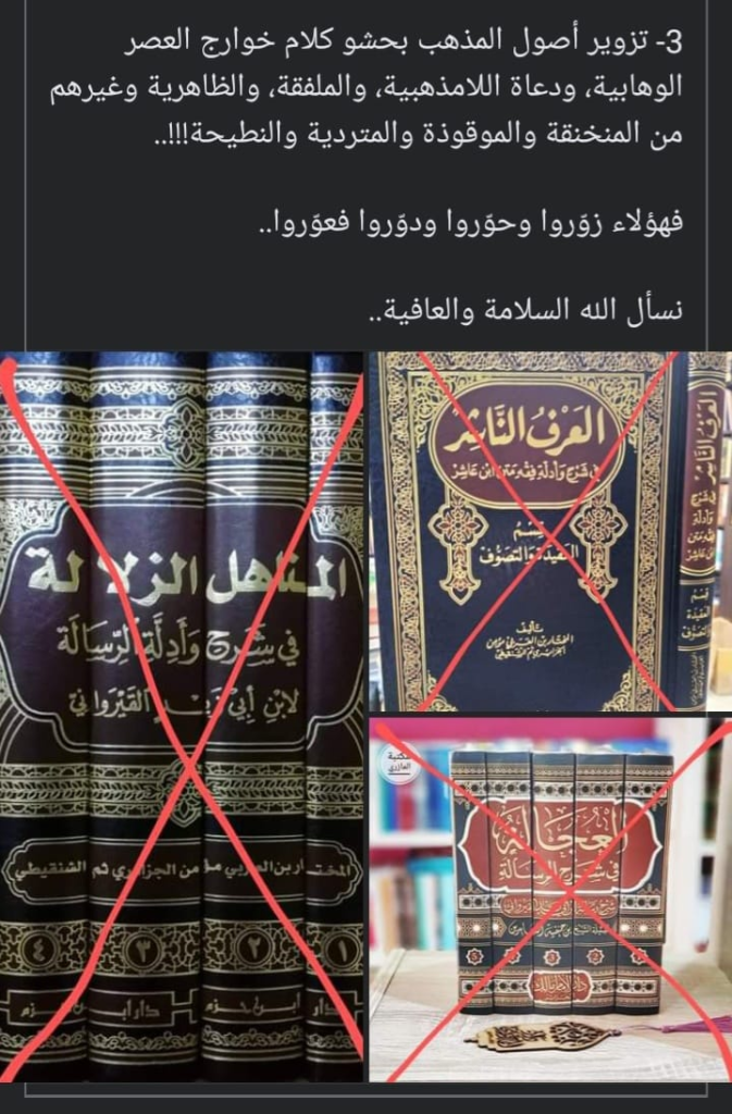 هذه التواليف قامت بتزوير الأصول التي قررها الإمام ابن أبي زيد القيرواني والإمام ابن عاشر، وإليك البيان باقتضاب: