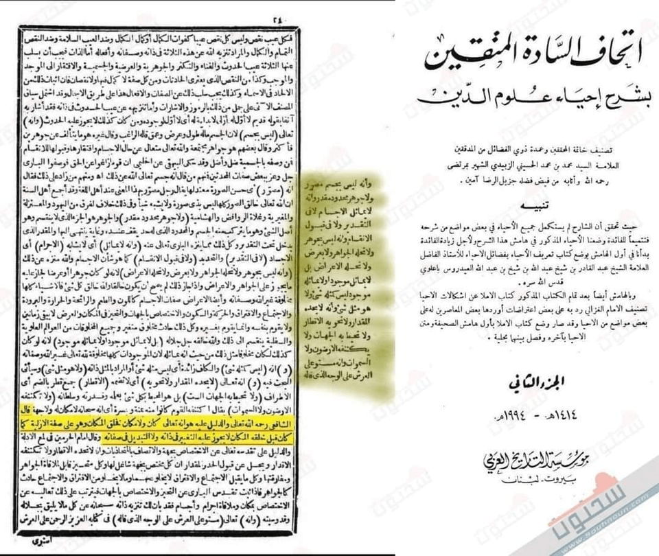 قول عظيم في التنزيه (من كتاب اتحاف السادة المتقين بشرح إحياء علوم الدين للحَافظ الفَقيه اللُّغَويّ مُرتَضى الزَّبِيديّ الحنَفيّ)