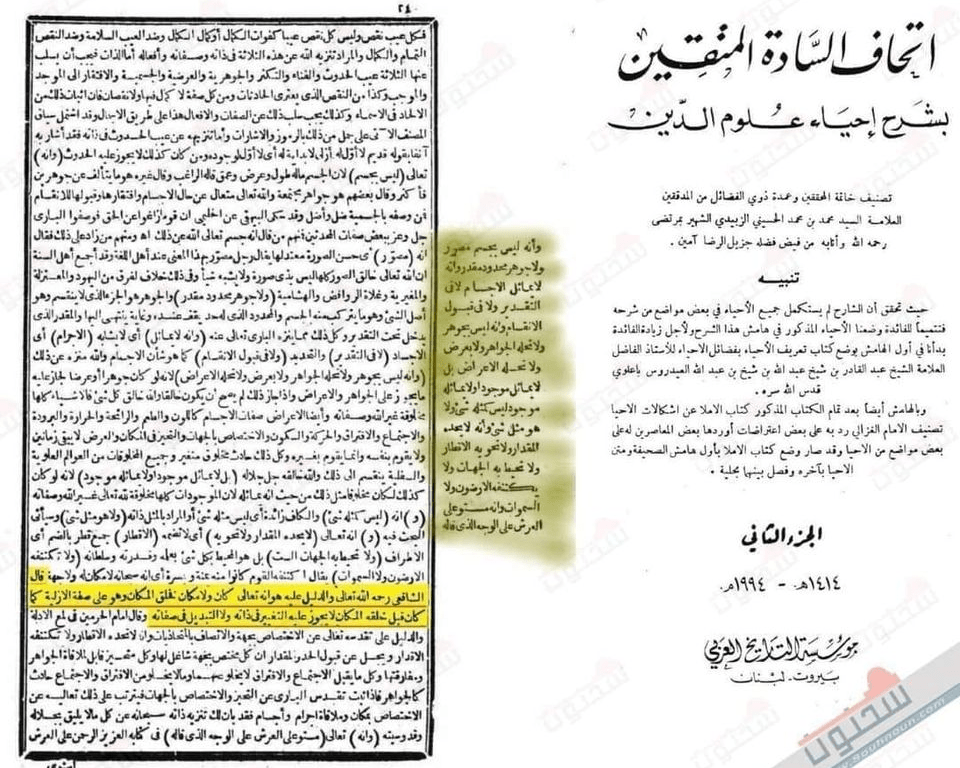 قول عظيم في التنزيه (من كتاب اتحاف السادة المتقين بشرح إحياء علوم الدين للحَافظ الفَقيه اللُّغَويّ مُرتَضى الزَّبِيديّ الحنَفيّ)