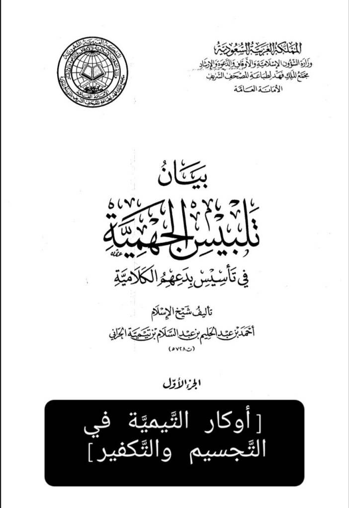 وليس أمام من يشكِّك في هذه الحقيقة إلَّا أن يستفرغ الجهد في تتبُّع واستقراء واستنطاق نُصوصهما في مطوّلاتهما العقديَّة؛ على غرار “بيان تَلبيس الجَهميَّة” و”درء تعارض العقل والنَّقل”؛ وهي من أكبر أوكار ابن تَيميَّة الَّتي استودع فيها نظريَّته في التَّجسيم والتَّكفير في أبهى صوَرها، ولقد أحصيت في هذه الكتب وحدها مئات المواضع الَّتي يروِّج فيها هذا الرَّجل لأباطيله بأسلوبه المصادم للمنهجيَّة العلميَّة، ناهيك عن كتبه الأخرى ونخصُّ منها: “منهاج السُّنَّة” و”شرح العقيدة الأصفهانيَّة” و”التِّسعينيَّة” و”شرح حديث النُّزول” وغيرها.