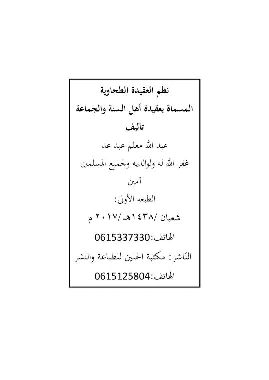 تصديق رسل الله، عقيدةأرجوزة في نظم العقيدة الطحاوية للعلامة عبد الله معلم عبد عد الصومالي الشافعي قبلنا الاجازة وجزاكم الله خير الجزاء في الدنيا والاخره شيخنا الفاضل ومن عمل معك هذا العمل الطيب المبارك أمين شارك هذا الموضوع:المزيد انقر للمشاركة على WhatsApp (فتح في نافذة جديدة) WhatsApp انقر للمشاركة على Telegram (فتح في نافذة جديدة) Telegram انقر للمشاركة على فيسبوك (فتح في نافذة جديدة) فيس بوك انقر للمشاركة على سلاسل (فتح في نافذة جديدة) سلاسل النقر للمشاركة على X (فتح في نافذة جديدة) X اضغط لمشاركة الموضوع على Reddit (فتح في نافذة جديدة) Reddit النقر لإرسال رابط عبر البريد الإلكتروني إلى صديق (فتح في نافذة جديدة) البريد الإلكتروني اضغط للطباعة (فتح في نافذة جديدة) طباعة اضغط للمشاركة على Pinterest (فتح في نافذة جديدة) Pinterest اضغط للمشاركة على Tumblr (فتح في نافذة جديدة) Tumblr اضغط للمشاركة على Pocket (فتح في نافذة جديدة) Pocket النقر للمشاركة على Nextdoor (فتح في نافذة جديدة) Nextdoor النقر للمشاركة على Mastodon (فتح في نافذة جديدة) Mastodon إعجاب تحميل... Related