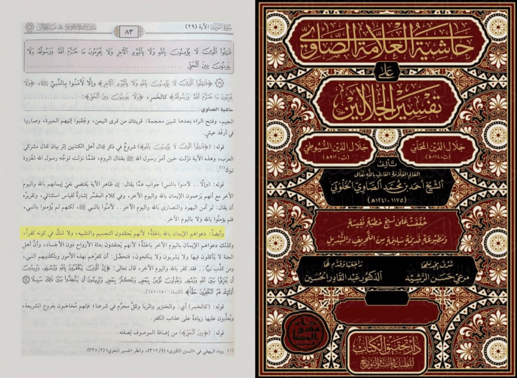 الاجماع على تكفير المشبهة المجسمة الجهوية – تفسير الجلالين