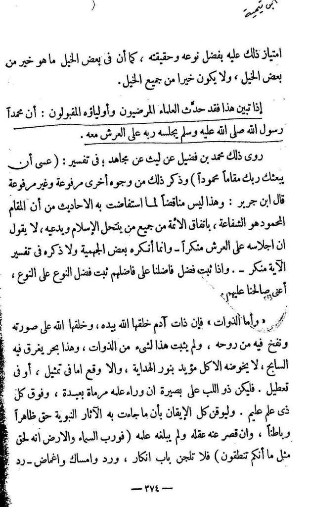 قوله بإجلاس النبي معه على العرش والعياذ بالله تعالى