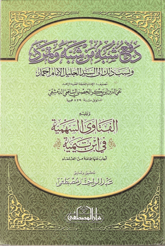 قال تقي الدين الحصني في كتابه دفع شُبه من شبه وتمرد ما نصه : ((وفي مواضع أغراضهم- أي ابن تيمية وأتباعه- الفاسدة يجرون الأحاديث على مقتضى العرف والحسن، ويقولون: ينزل بذاته وينتقل ويتحرك ويجلس على العرش بذاته، ثم يقولون: لا كما يعقل، يغالطون بذلك من يسمع من عامي وسيء الفهم، وذلك عين التناقض ومكابرة للحس والعقل، لأنه كلام متهافت يدفع ءاخره أوله وأوله ءاخره)) اهـ