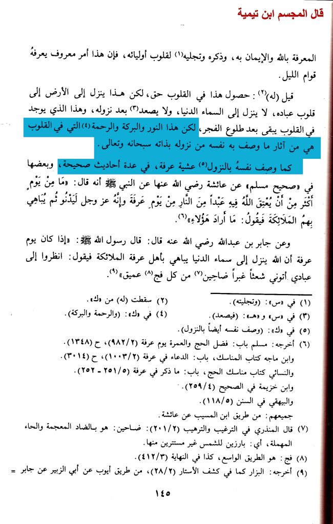 ابن تيمية : يقول بالانتقال والحركة والنزول في حق الله تعالى