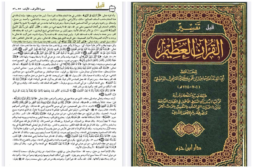 من كتاب تفسير القرآن العظيم ص ٧٦٢ لابن كثير الدمشقي حبيب قلوب الوهابية فيه رد على *المشبهة المجسمة*