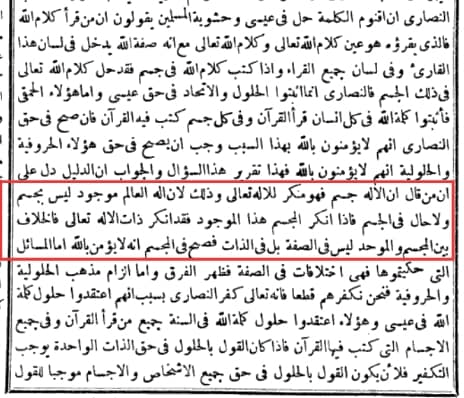 إلى أن قال: “فصحَّ في المُجسِّم أنَّه لا يُؤمن بالله”. انتهَى.