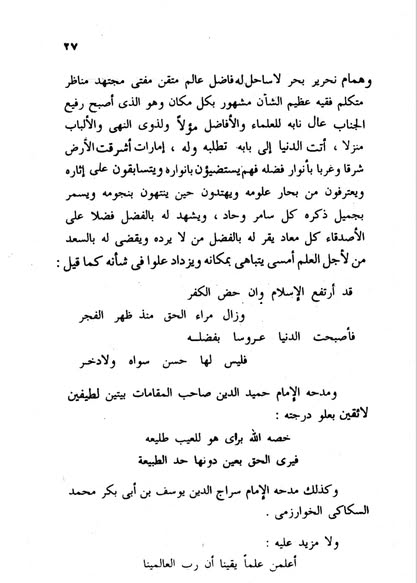 ومدحه الإمام حميد الدين صاحب المقامات ببيتين لطيفين