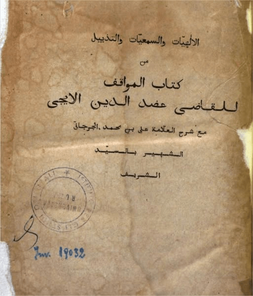 ب- كتاب المواقف للعضد الإيجي مذكور فيه نفس النص الذي في متنه العقدي لكن من دون لفظ “وَأَمَّا غَيْر ذَلِكَ فَالقَائِلُ بِهِ مُبْتَدِعٌ وَلَيْسَ بِكَافِرٍ، وَمِنْهُ التَّجْسِيمُ.”