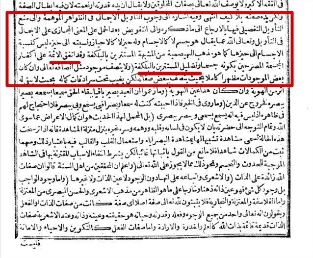 وحتى بعض شراح العقائد العضدية ممن ذكروا تلك العبارة عقبوا عليها، كالشارح جلال الدين الدواني حيث قال: “التجسيم مع البلكفة غير مكفر، بخلاف التجسيم مع غير البلكفة”. انتهى