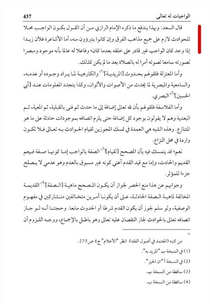 وقال التفتازاني في شرح المقاصد بعد أن حرر محل النزاع : “وبهذا يندفع ما ذكره الإمام الرازي من أن القول بكون الواجب محلاً للحوادث لازم على جميع الفرق وإن كانوا يتبرؤون منه……