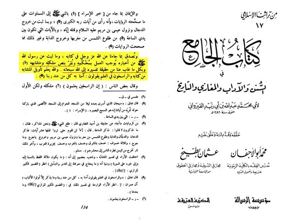 * قال العلامة الكوثري رحمه الله في تعليقه على تبيين كذب المفتري في هامش صحيفة 123 ما نصه: “يطبق شراح رسالته -أي ابن أبي زيد- على أن هذه اللفظة إما مدسوسة أو من قبيل الاحتراس بالرفع أي: المجيد بذاته”. انتهى