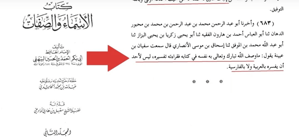 وقال الوليد بن مسلم : “سألت سفيان الثوري، ومالك بن أنس، والأوزاعي، والليث بن سعد عن هذه الأحاديث التي في الرؤية والصفات قال: ” أمروها على ما جاءت، ولا تفسروها “.