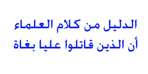 قال الحافظُ العسقلانيُّ في كتابهِ تلخيص الحبير في تخريج أحاديثِ الرافعيِّ الكبير – كتابَ الإمامةِ وقتالِ البغاة جزء 4 صحيفة 44 – ما نصُّه :” قولُه ـ يعني الرافعيَّ ـ :” ثَبَتَ في المستدرَك أنَّ أهلَ الجملِ وصِفِّينَ والنَّهْرَوَانِ بُغاة ” هو كما قال ويدُلُّ عليه حديثُ عليٍّ :” أُمِرْتُ بقتال الناكثينَ والقاسطينَ والمارقين ” ، والحديثُ رَوَاهُ البَزَّارُ والطَّبَرانيُّ ورَوَاهُ النَّسَائِيُّ في الخصائص . والنَّاكثونَ هم أهلُ الجَمَلِ لأنهم نَكَثُوا بَيْعَتَهُ ، والقاسطونَ هم أهلُ الشَّام لأنهم جاروا عن الحقِّ في عَدَمِ مبايعتهِ ، وأمَّا المارقونَ فهم أهلُ النَّهْرَوَانِ وذلك لثبوتِ الخبرِ الصَّحيحِ فيهم أنهم يَمْرُقُونَ من الدِّينِ كما يمرُقُ السَّهْمُ من الرَّمِيَّة “انتهى كلامُ ابنِ حَجَرٍ بحروفه ..