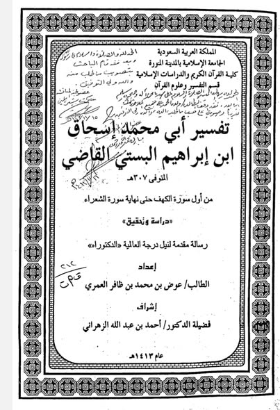 في ما يلي مقتطفات من مخطوط تفسير أبي محمد إسحاق بن إبراهيم البستي.