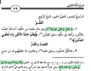 جاء في بعض مخطوطات شرح السنة للمزني، أنه قال: ” عَال على عَرْشه في مجده بِــــــــذَاتِهِ وَهُوَ دَان بِعِلْمِهِ من خلقه أحاط علمه بالأمور وأنفذ في خلقه سابق الْمَقْدُورِ وَهُوَ الْجواد الغفور { يعلم خَائِنَةِ الْأَعْيِنِ وَمَا تخفي الصُّدُور} “. انتهى