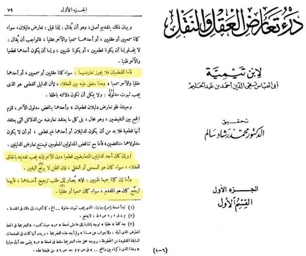 المبحث الرابع حكم مسائل العقليات والمحسوسات أن يرد كل شىء من ذلك إلى بابه، ولا تخلط العقليات بالسمعيات ولا السمعيات بالعقليات، والوهم في غير المحسوسات ليس بمقبولٍ وهو يتضمن الآتي: – سائر الكلام في تفصيل فروع التوحيد والعدل إنما هو مأخوذ من القرءان . – وأهل السنة تحققوا أن لا معاندة بين الشرع المنقول والحق المعقول. – لا يعرف الله بالحواس ولا يقاس بالناس، ولا … متابعة القراءة لا يعرف الله بالحواس ولا يقاس بالناس ولا مدخل في ذاته وصفاته للقياس وبيان فضل علم الكلام و أدلة من القرءان والسنّة على أدلة المتكلمين
