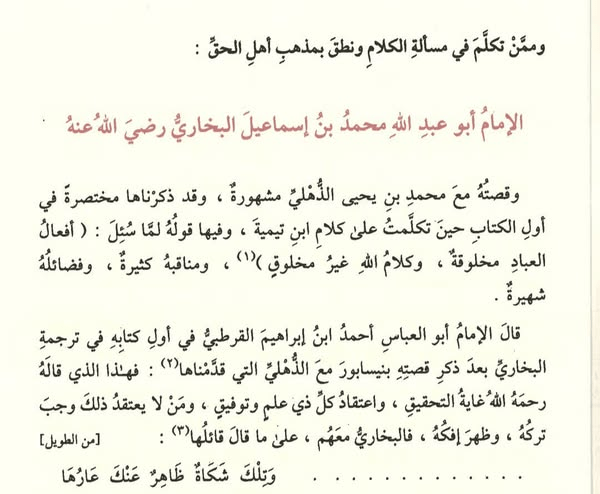 وَهَذَا مَا سُبِقَ إِلَيْهِ أَبَداً، قَالَهُ فِي مُعَارَضَةِ مَنْ يَقُوْلُ بِخَلْقِ القُرْآنِ. – الذهبي – سير أعلام