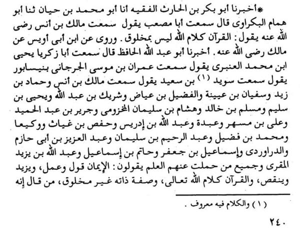 1- جاء في كتاب العقيدة المنسوب للإمام أحمد بن حنبل إملاء أبي الفضل التميمي أن الإمام أحمد بن حنبل قال: “وأنّ الله تكلم بالصوت والحرف” انتهى