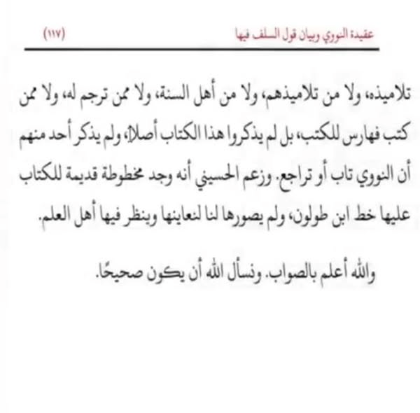 وعليه فنسبة هذا المخطوط إلى الإمام النووي ضعيفة جدًّا، بل تكاد تكون معدومة، لغياب السند، والاكتفاء بذكر اسمه على الغلاف، ومخالفة الأسلوب، وخلو فهارس مؤلفاته منه. ومثل هذه الحالات تحتاج إلى تحقيق دقيق قبل اعتماد النسبة، التزامًا بالمنهج العلمي في حفظ التراث من الأخطاء والتصحيفات.