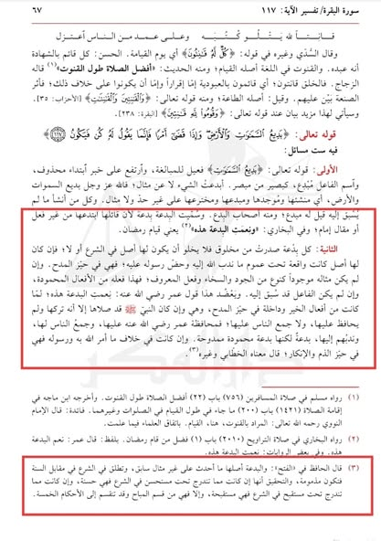 فقول عمر عن اجتماع الناس: ” إنْ كانت هذه بدعة، فنعمت البدعة “، ظاهر في الكلام عن البدعة الشرعية فمن أين أتى هؤلاء بمصطلح “البدعة اللغوية”.؟