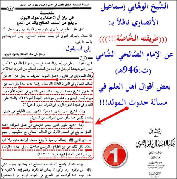 الجزء 15: الخيانة العلمية للوَهَّابي إسماعيل الأنصاري في نقل كلام بعض الأئمَّة حول عمل الـمولد.