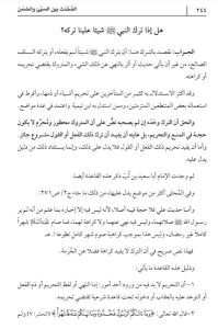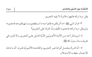 و- قولهم:” قال النبي صلّى االله عليه وآله وسلّم: ما أمرتكم به فائتوا منه مااستطعتم وما نهيتكم عنه فاجتنبوه”. وجوابه ان النبي لم يقل: وما تركته فاجتنبوه، فكيف دل الترك على التحريم؟