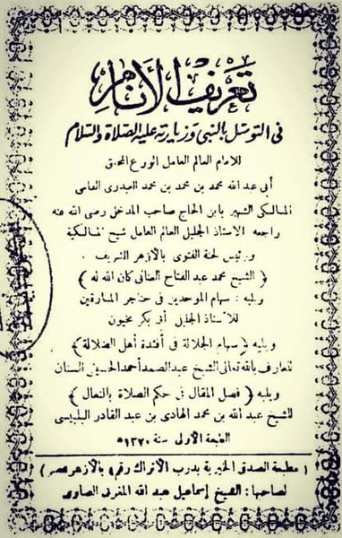 *أما كتاب (تعريف الأنام في التوسل بالنبي وزيارته صلى الله عليه وسلم) فقد قرّظه الشيخ محمد عبد الفتاح العناني المالكي بتقريظ نفيس على وجازته قرر فيه مشروعية التوسل بالنبي صلى الله عليه وسلم خلافًا لأهل البدع.