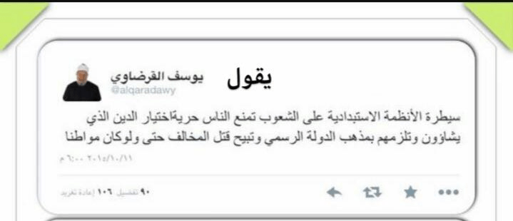 وعلى صفحته على وسائل التواصل الاجتماعي يقول القرضاوي بأن اﻷفراد لهم حرية اختيار الدين…