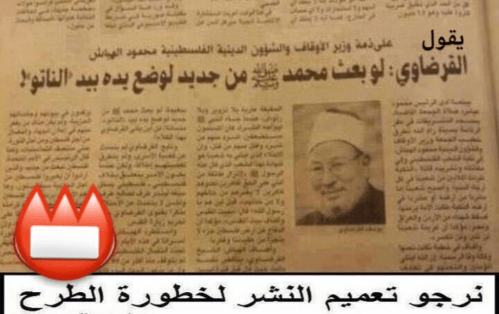 القرضاوي، مفتي الناتو، يقول: “لو بعث محمد من جديد لوضع يده بيد الناتو”.‼️
