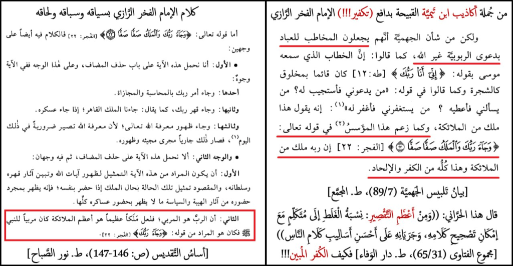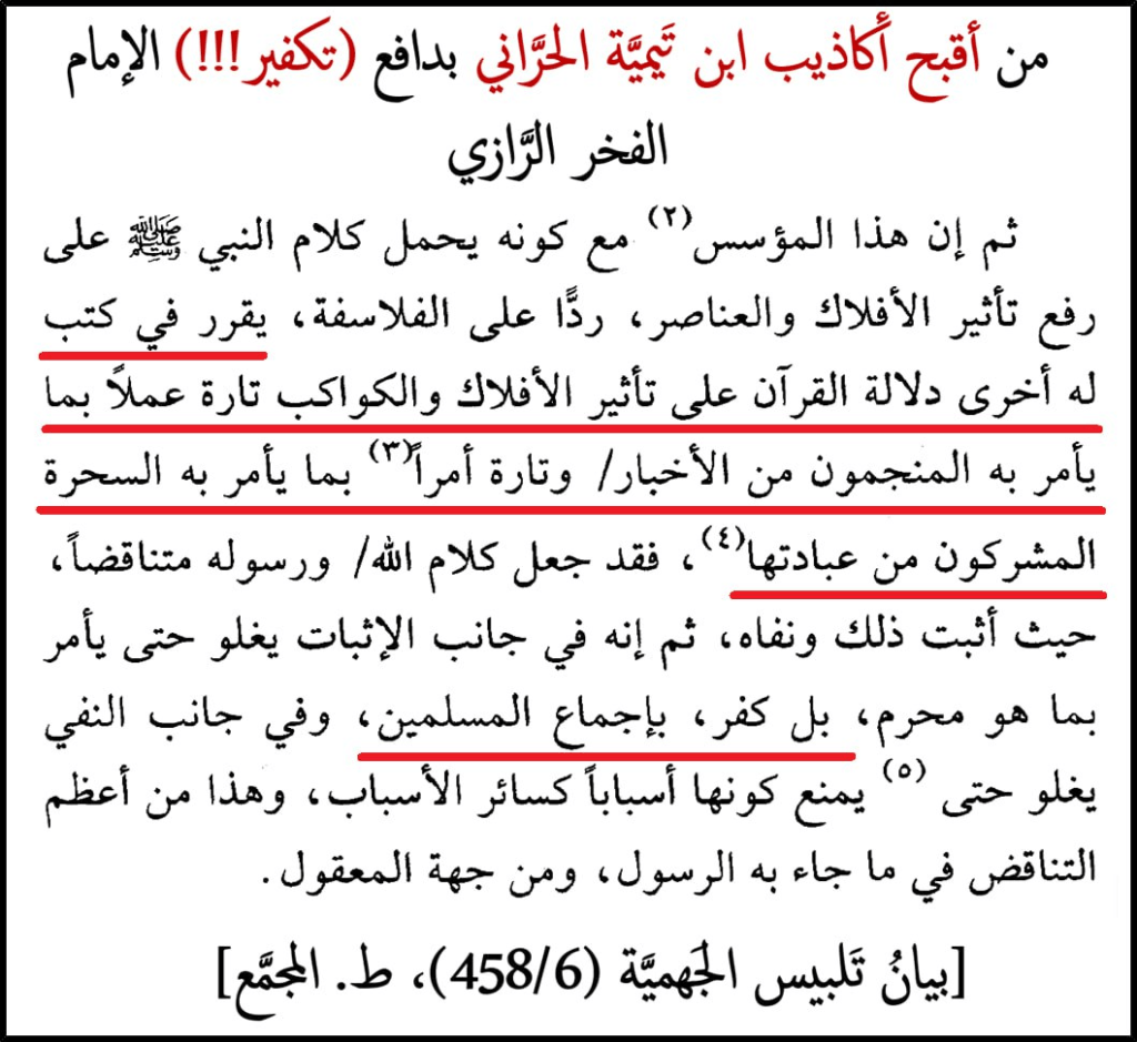 من أقبح أكاذيب ابن تَيميَّة الحرَّاني بدافع (تكفير!!!) الإمام الفخر الرَّازي [بيانُ تَلبيس الجَهميَّة (6/458)، ط. المجمَّع].