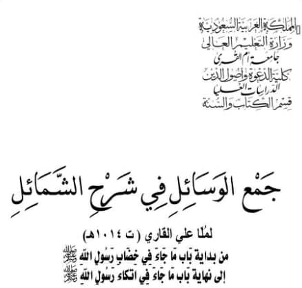 كتاب مرقاة المفاتيح شرح مشكاة المصابيح، وكتاب جمع الوسائل في شرح الشمائل، هما كتابان من تأليف الملا علي القاري المتوفى سنة 1014 هجري.