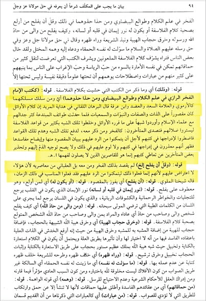 ثم إنَّ كتُب الرازي والبيضاوي نفسها تقوم على تفنيد مقالات الفلاسفة وإبطالها، لا على إقرارها. فكيف يصحّ أن يُتّهم من يردّ الباطل بأنه يستمدّه؟ إنما هذا من الخلط وسوء الفهم، بل من العجز عن قراءة النصوص في سياقها العلمي والمنهجي. وقد شهد لهذا كبار العلماء، إذ قالوا إنّ من لم يعرف الشبهة لا يحسن ردّها، وإنّ الردّ لا يكون إلا بعد الإحاطة بحُجّة الخصم.