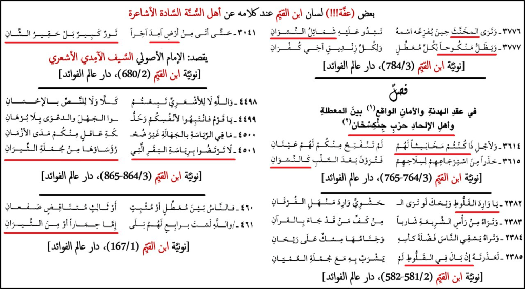 ابن القيِّم عند كلامه عن أهل السُّنَّة السَّادة الأشاعرة