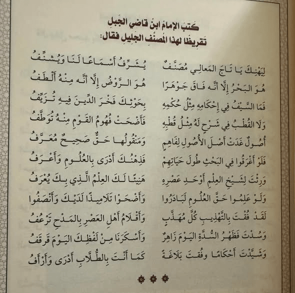 لِيَهْنِكَ يَا تَاجَ المَعَالِي مُصَنَّفٌ يُشَرِّفُ أَسْمَاعًا لَنَا وَيُشنِّفُ