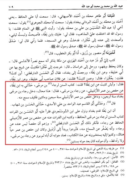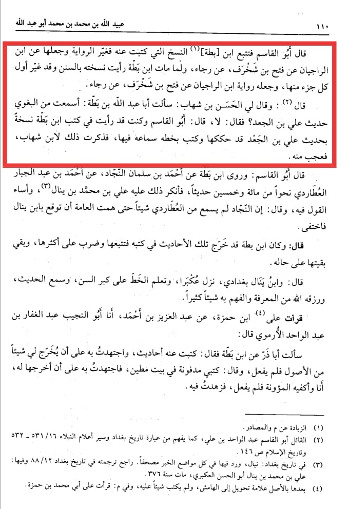 وهذا النقل كذلك سنده منقطع، مما يسقط اعتباره في مباحث العقيدة، خصوصًا مع غياب المخطوط الأصلي للكتاب. و بالتالي