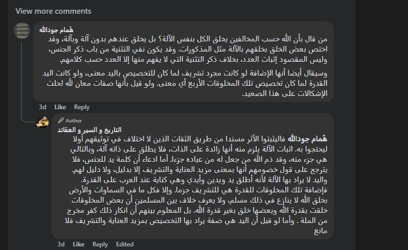 فلا متمسك للحدادية وغيرهم من الحشوية في اثبات المماسة لله عز وجل بمثل هذه المرويات، أو غيرها. وهؤلاء يزعمون أن اليد هي بمعنى الآلة، مع أن اثبات الآلة يلزم منه أنها زائدة على الذات، إذ لا يطلق على ذاته آلة، وبالتالي هي جزء منه، وقد ذم الله من جعل له من عباده جزءا.